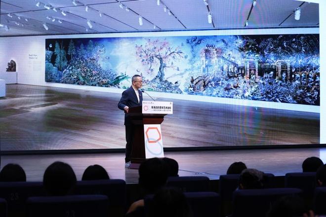 最后,我想将一位已经过世的中国艺术家石虎的作品分享给大家。今年上半年,我在上海海派艺术馆策划了一个展览“兹山无尽——石虎最后十年布面纸本重彩画展”。我认为,石虎先生的作品在我们探索中国风、世界风之间,走出了一条可以参照的路径。谢谢大家!(全场鼓掌)