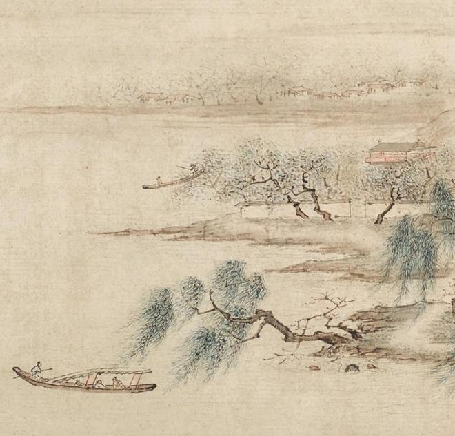 庞莱臣后人捐赠南博的《江南春》图卷局部