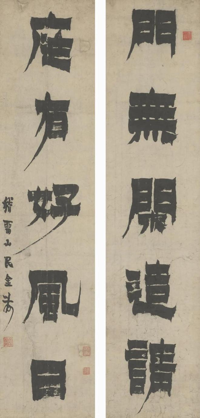 清 金农漆书“门无庭有”五言联105cm×24cm×2故宫博物院藏