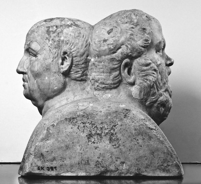 塞涅卡和苏格拉底的双面大理石像,创作于公元三世纪。