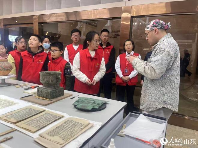 参加研学活动的山东师范大学学生耿嘉翊不仅在周末和假期经常来博物馆看展、研学,而且还是山东博物馆的小志愿者。“我是从博物馆长大的孩子,在这里留下了特别多关于新年的美好童年回忆。”